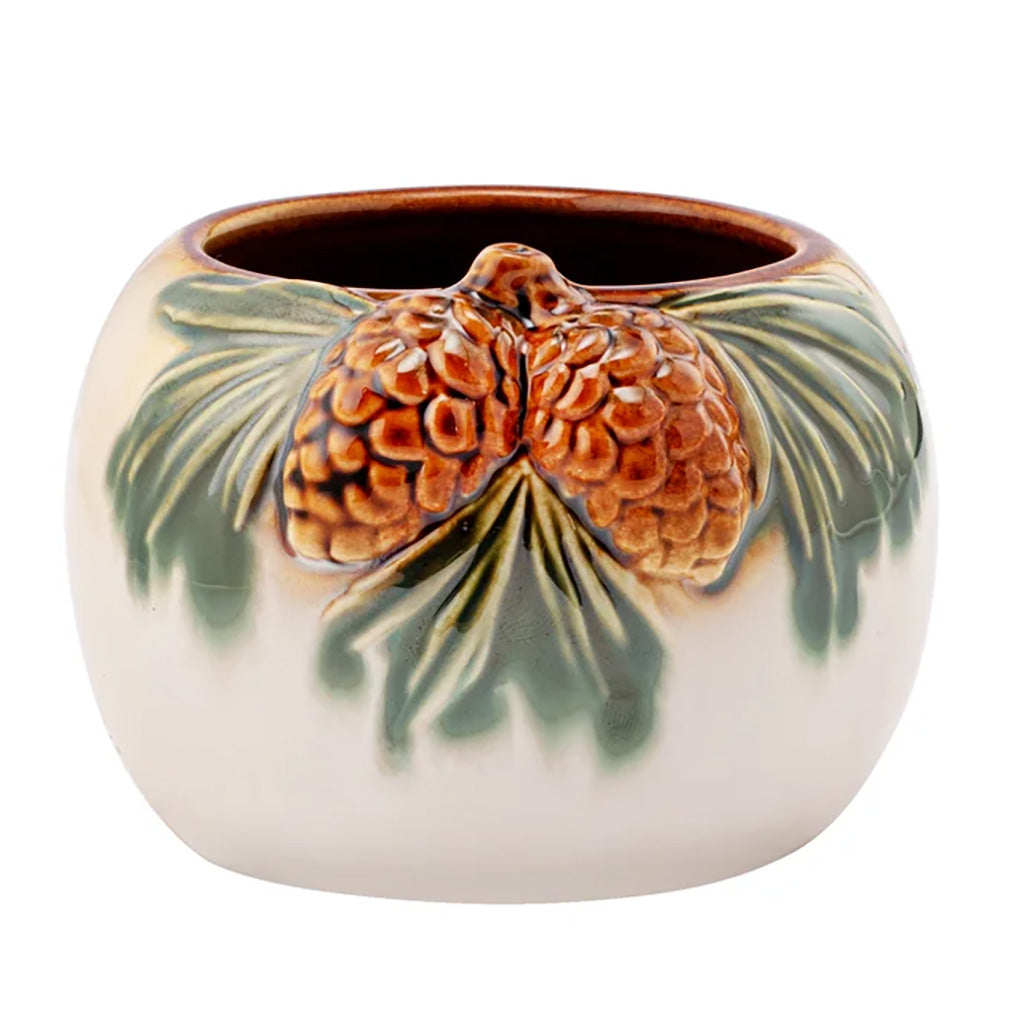 Add a touch of rustic charm to your home décor with this beautifully crafted ceramic planter. Featuring a hand-painted pinecone and pine needle design in warm earthy tones, this round planter exudes vintage seasonal vibes. The raised relief adds texture and depth, making it a standout accent for any room.