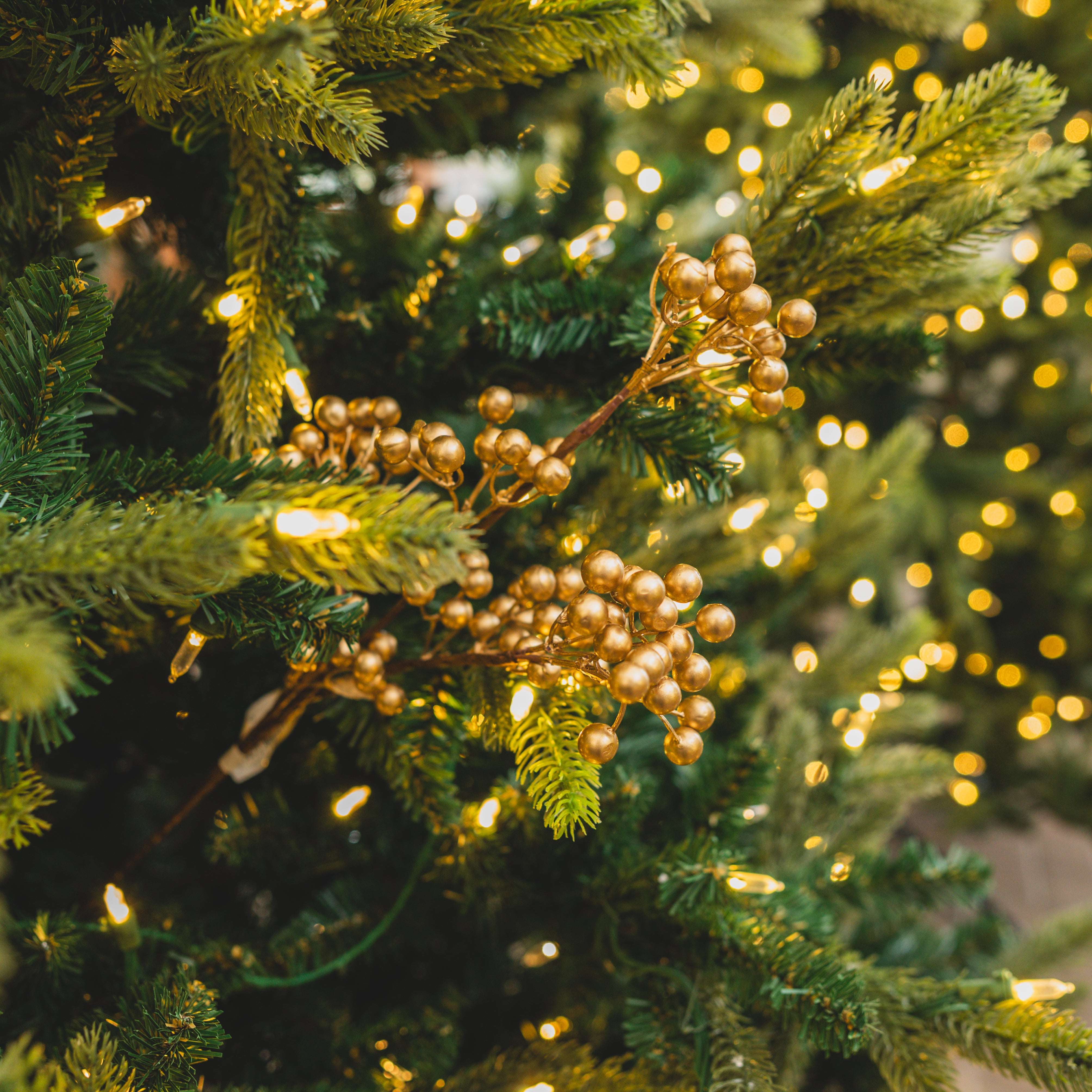 Gold Berry Pick is 16in high Christmas Decoration. Featuring a stunning array of golden berries, this decorative pick will add a touch of glamour to your floral arrangements or seasonal decorations. It is perfect for enhancing wreaths, centerpieces, and DIY crafts. Its shimmering finish catches the light beautifully, making it an eye-catching accent for any setting. Easy to incorporate into existing designs, this versatile piece is a must-have for elevating your Christmas festivities.
