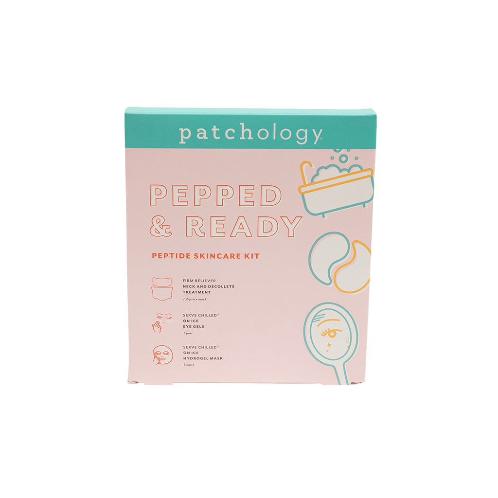 Elevate your skincare game with the Patchology Pepped & Ready Kit. Featuring Firm Believer, On Ice Eye Gls, and the On Ice Face Mask, this peptide-powered trio hydrates, firms, and revitalizes your skin- so you're always ready for what's next.