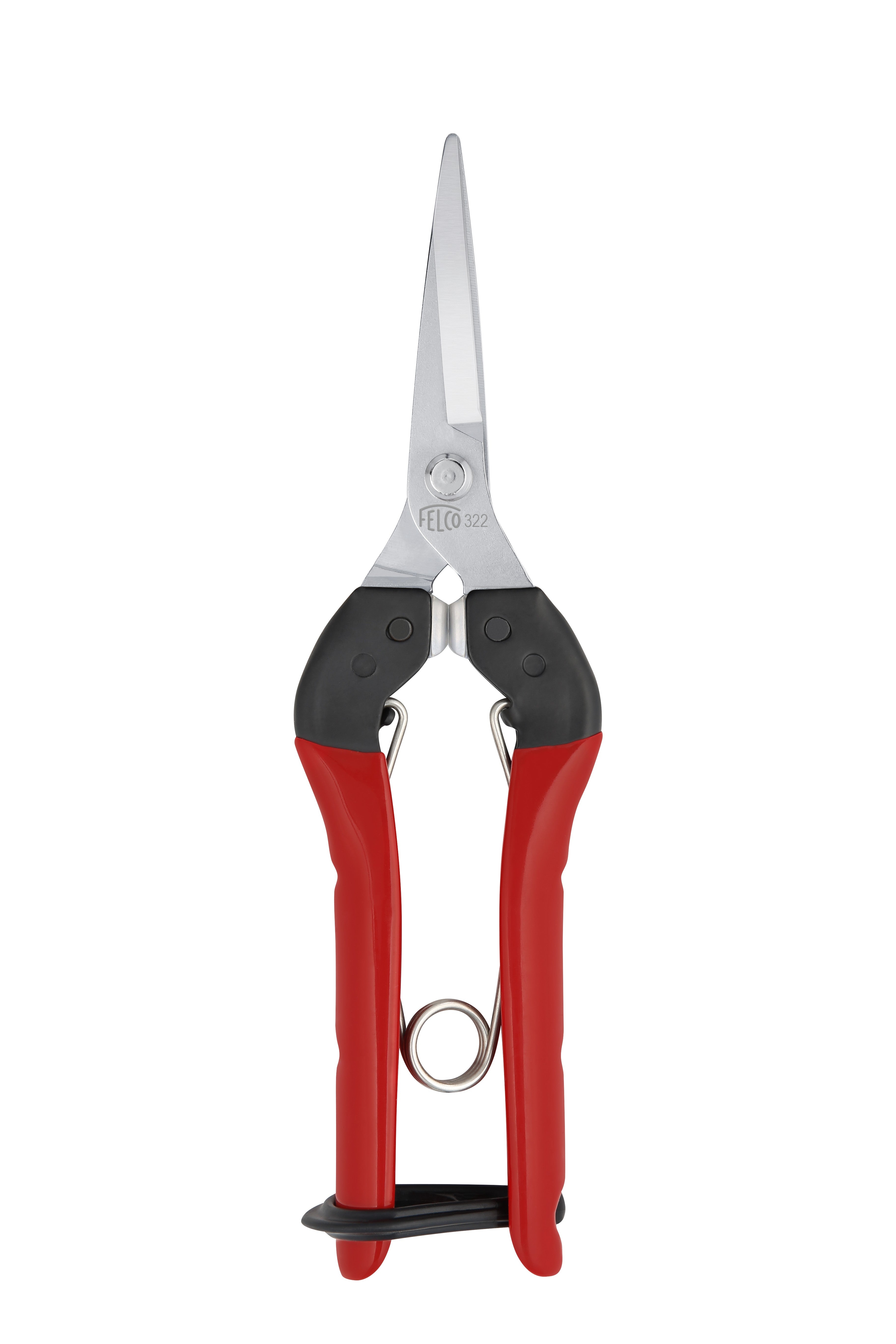 With its 190 mm chromium blades, the FELCO 322 picking and trimming snips have the longest reach in our range. They offer maximum comfort during cutting thanks to polyurethane shock absorbers, while their flexible pin spring also helps reduce muscle tension. FELCO 322 picking and trimming snips have been designed for professionals in viticulture, arboriculture and greenhouse growing, and also nurseries and florists; they will equally satisfy the needs of demanding gardening enthusiasts.