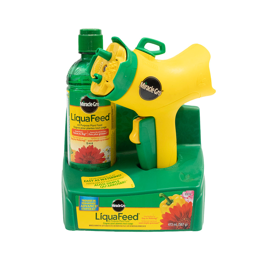 With the Miracle-Gro® Liquafeed® Advance Starter Kit, taking care of your plants has never been easier. Simply hook up the device to a garden hose and use the dial to switch between feeding and watering your garden. No more complicated instructions or messy mixing - this starter kit does the work for you so you can spend more time enjoying your beautiful, healthy plants.