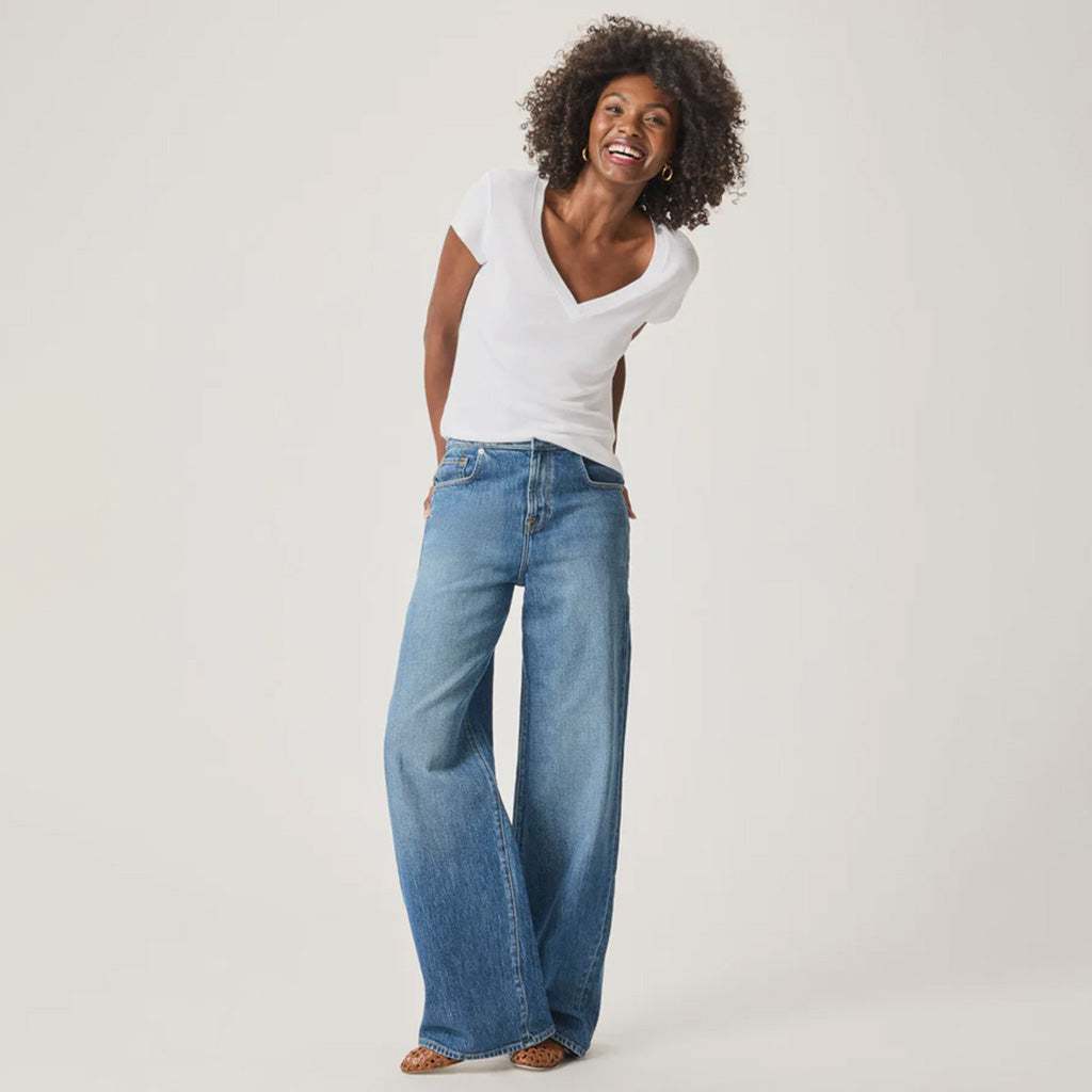 Upgrade your tee shirt drawer with our classic layering knit Faye V-Neck Tee. This slim fit, V-neck tee is soft to the touch and skims the body in all the right places. It's stretchy enough to seamlessly move with your body, sturdy enough to bounce back to a good-as-new shape. (Trust us, its wear alone or layer-under-anything versatility will make it a fast favorite.) 60% cotton 40% viscose Machine wash cold water