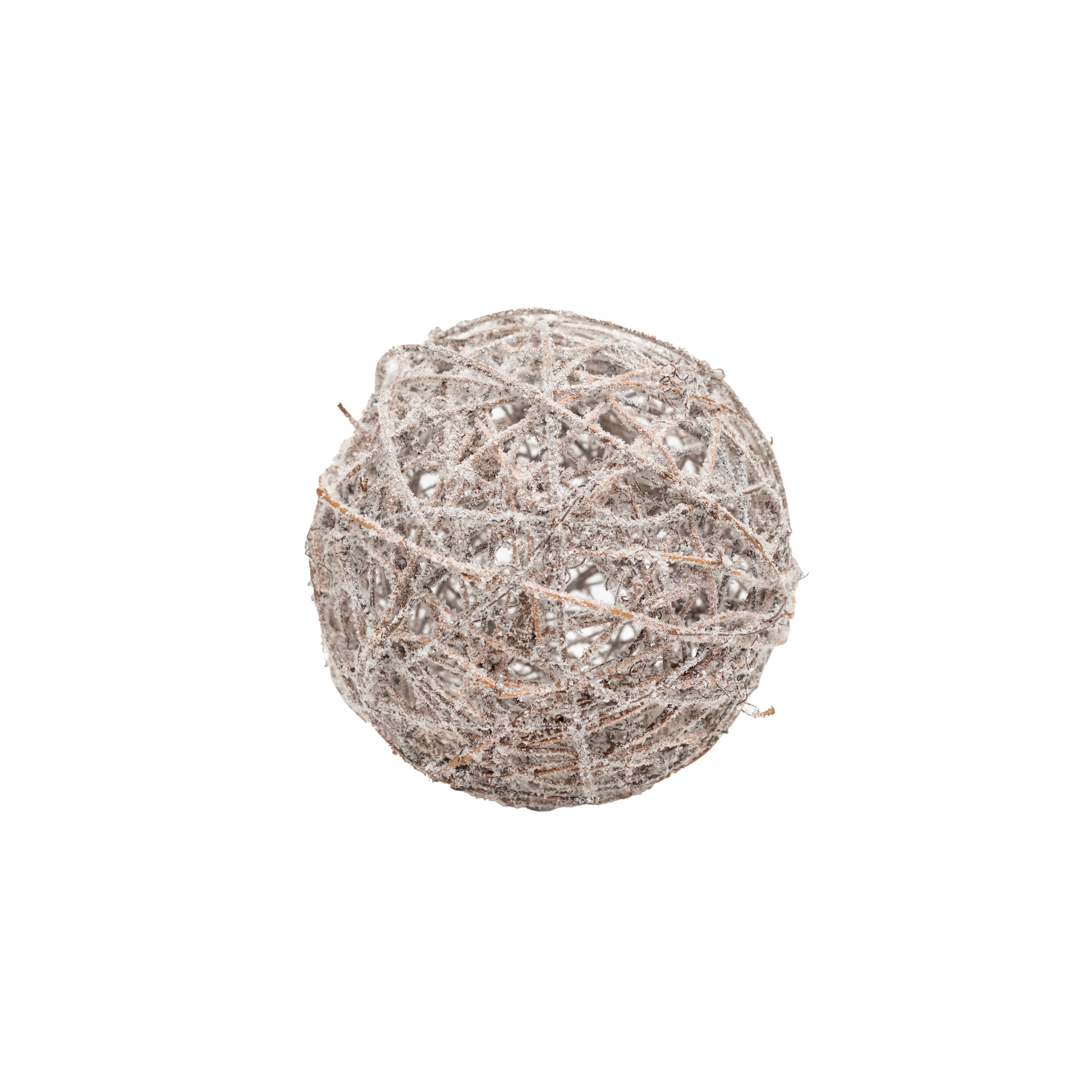 Add rustic charm to your holiday décor with this frosted twig ball ornament. Crafted from natural twigs and dusted with a snowy finish and glitter accents, it brings a cozy, woodland touch to your Christmas tree or seasonal displays. Perfect for farmhouse, rustic, or nature-inspired themes, this ornament combines simplicity with festive elegance.