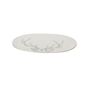 Elevate your dining experience with the exquisite Antler Serving Platter. Crafted from durable stoneware, this platter features hand-sculpted and painted details that add a touch of rustic elegance to your table setting. Whether you're serving a holiday feast or an everyday meal, this platter is sure to impress your guests with its intricate design and craftsmanship. Its generous size provides ample space for showcasing your culinary creations, and the hand-sculpted antler accents make it a standout piece. While it exudes a natural, outdoorsy charm, it's also versatile enough to complement various table settings. Please note that this platter requires hand washing to maintain its beauty and quality.