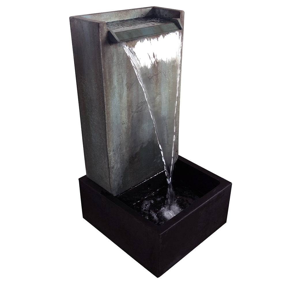 The Burbank water fountain offers a timeless design & finish that will enhance any setting. With its universal appeal, this stunning fountain will become the center of attention in any home or garden. Enjoy the sight & sound of cascading water, adding a relaxing and tranquil focal point to your patio, garden, balcony, or home. Size: 19.7" x 23.6" x 39.4". Made of Fiberglass reinforced concrete, it is weatherproof and UV protected. Easy to assemble; no plumbing needed. Holds 6L/1.6gal. Pump is included, electric powered. Line cord is 11.5 ft, output is 120/220-240- volt.