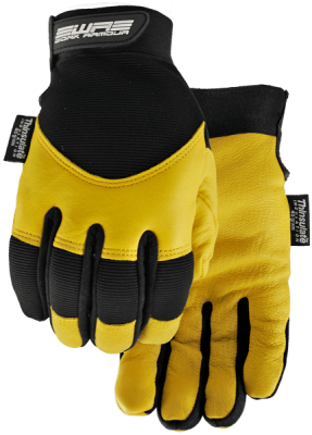 Leather hooded fingertips and reinforced thumb for additional padding and protectionSnug-fitting elastic wrist and secure Velcro® closure keeps out dirt and debris