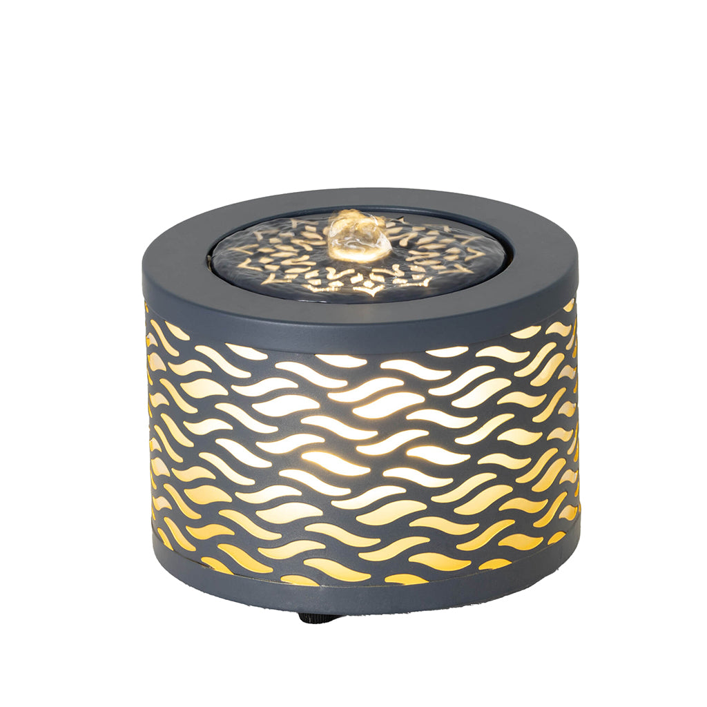 Elevate your outdoor oasis with the Wave Tabletop Fountain. This compact, UL-approved fountain brings a soothing wave pattern and warm, blue-tinted light to any outdoor space. Crafted from a sleek galvanized metal blend, the Wave fountain creates a mesmerizing display that'll transport you to your own private sanctuary. Simply plug it in and let the gentle ebb and flow of the water lull you into a state of pure zen. Whether you're looking to add a calming focal point to your patio or a touch of serenity to your living room, this tabletop fountain is the perfect addition to your tranquil retreat. 7"L x7"W x5.25"